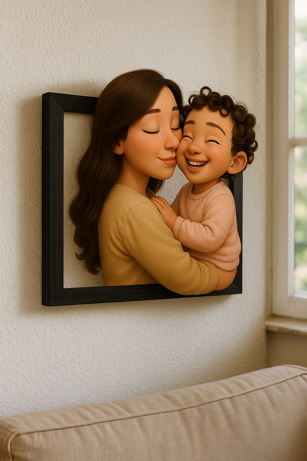 "Lo compré con un poco de duda, pero superó mis expectativas. El estilo tipo Disney es precioso, los colores son suaves y emotivos, y el hecho de que las cabezas sobresalgan del marco le da un toque 3D increíble. ¡Parece cobrar vida!"