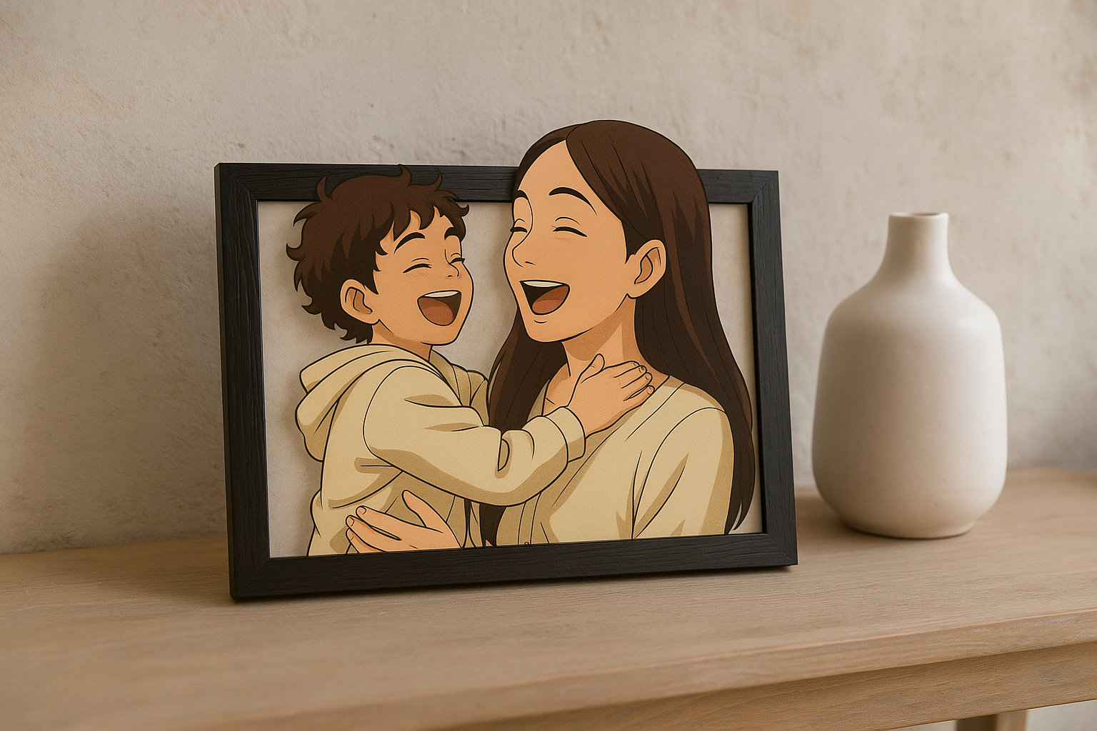"Le regalé este cuadro a mi esposa con una ilustración de ella y nuestros hijos. Se quedó sin palabras. La calidad es excelente, se nota el cuidado en cada detalle. Sin duda, un regalo con valor emocional eterno."